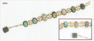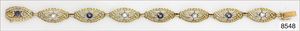 Armband, Frankreich um 1910, JUGENDSTIL-Elemente mit girlandenartiger Umrandung, GG 750/000, 4 Saphire ca. 1,4 ct., 4 Altschliff-Diamanten ca. 0,45 ct, L = 19,5 mm