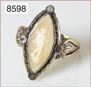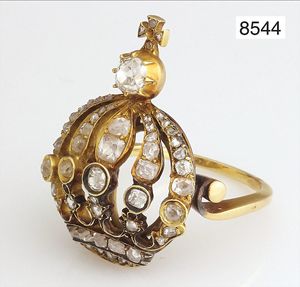 Sehr ungewöhnlicher Ring um 1800, Frankreich, GG 750/000, Altschliff-Diamanten & Dianmant-Rosen (2 Steine fehlen), wohl aus einem Adelshaus verliehene Nadel, die wohl um 1900 als Ring umgearbeitet wurde, feine Fassarbeiten, RW ca. 51,5, Sammelwürdig !