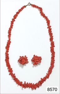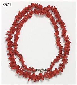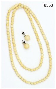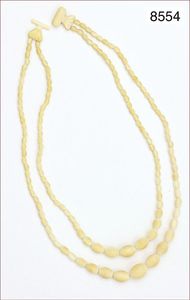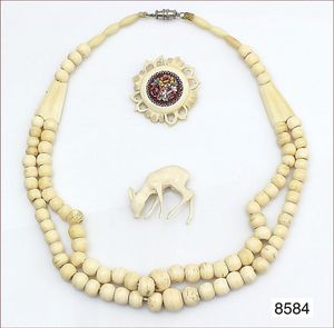 Lot: Kette, Bein vorne doppelreihig, ca. 42,5 cm, Brosche Bein mit Millefiori-Einlagen (Teil der Broschierung fehlt), Reh (Elfenbein), Anfang 20tes Jhdt.