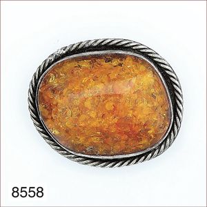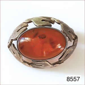 Brosche, 835/000 Silber, Bernsteincab. umrandet von fliegenden Vögeln, Meisterzeichen "Fisch", ca. 31 x 23 mm