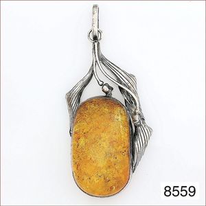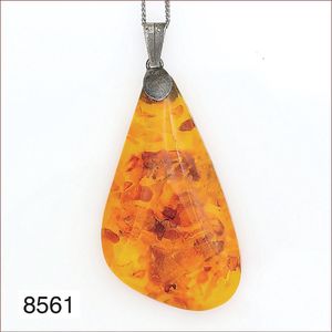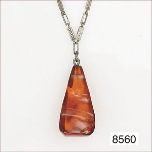 Anhänger mit Kette, 835/000 Silber, Bernstein-Anhänger 36,5 x 76,5 mm, Meisterzeichen "Fisch", Kette Silber 925/000, ca. 70 cm
