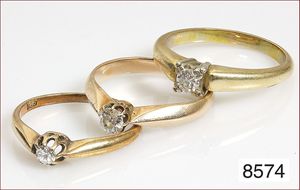 Lot: 3 Ringe, GG 585/000, 1 Brill. weiß 0,08 ct, RW 50, 1 Brill. weiß 0,17 ct, RW 51, 1 Brill. weiß 0,20 ct, RW 56,5
