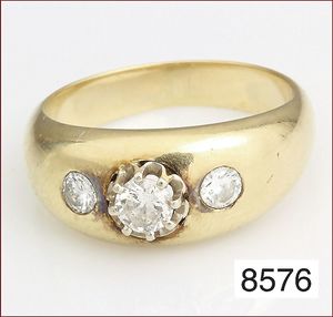 Ring, GG 585/000, 3 Brillanten ca. 0,70 ct weiß-p, (mittlere Stein ca. 0,35ct), RW ca.61, total 11,2 g
