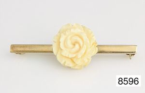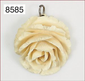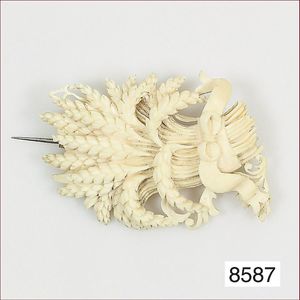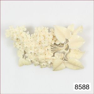 Brosche, sehr feine Schnitzarbeit, um 1910/20, Fliederblüten mit Blättern, Bein, ca. 68 x 37,5 mm