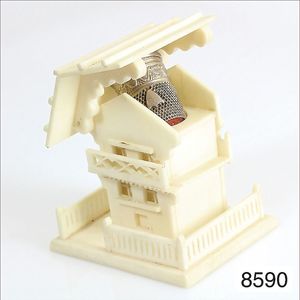 Fingerhuthalter, 1.Hälfte 20.Jhd., filigran gearbeitetes Häuschen mit aufklappbarem Dach, Bein ?, ca 48,0 x 48,0 x 38 mm
