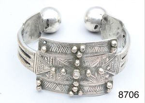 Armspange (alt), TUNESIEN, Silber (mit Widderkopf gepunzt), Fläche mit gepunzten Ornamenten verziert, ca. 69,0 x 66,5 cm (außen), ca. 125,0 g