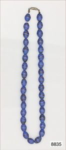 Goldfarbenes, Collier von Grosse (Henkel & Grosse,Pforzheim), sig. mit der Jahreszahl 1966, klassisches Goldband mit goldfarbigen Elementen und königsblauen gefassten Steinen, L = 41,5 cm