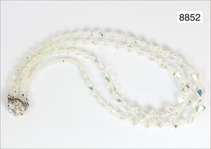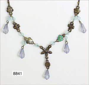 Grüne Glas-Kette mit feinem Draht umwickelt, dekoratives Mittelteil, Avantgardeschmuck der 20er Jahre, Originalzustand, ca. 46 cm