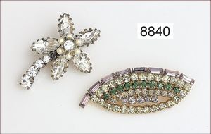 Große Strass-Brosche, signiert WEISS (USA), 50er Jahre, klarer Strassbesatz in unterschiedlichen Formen, gefasste Steine,47,5 x 61 mm