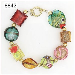 Goldfarbenes Armband von FLORENZA, USA (signiert), 50er Jahre, dunkel-goldfarbenes Metall, verschlungenes Muster, reich besetzt mit zahlreichen Kunstperlen, L = 18,5 cm