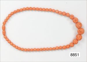 Goldfarbenes Halsband von GIVENCHY (2 x sig. mit dem GIVENCHY Logo), zwei netzartige Kettenstränge, in der Mitte verbunden durch quadratisch geschliffene Steine, in Rot-und Rose-Tönen, L = 38,5 cm