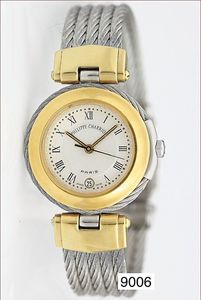 Damenuhr, PHILIPPE CHARRIOL, (reifartig), Quarz, Stahl goldplattiert, Zentralsekunde, Datum auf 6 Uhr, Innenmaß 61 x 39,5 mm, Uhr läuft,