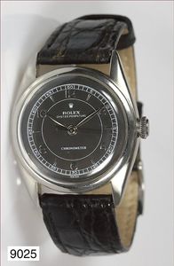 Herrenarmbanduhr, ROLEX Oyster Perpedual aus den 60er Jahren, Chronometer, Edelstahl, Automatik, verschraubter Boden (wurde nicht fachmännisch geöffnet- kl. Macken), verschraubte Krone, schwarzes Zifferblatt mit Strichindex und Zahlen, Zentralsekunde, Kunstoffglas, D = 32 mm, (1 Schraube fehlt), Zustand dem Alter entsprechend, Uhr läuft