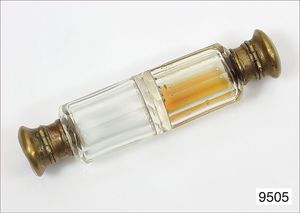 Doppel-Flacon, England, 2.Hälfte 19.Jhd., Victorianisch, Messingmontur mit 2 Korken, Höhe ca.115.0 mm, D = 27,0 mm