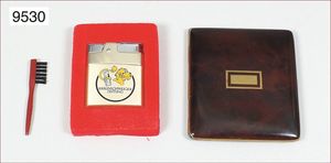 Benzinfeuerzeug und kleines Zigarrettenetui, 50er Jahre, Werbung: BRAUNSCHWEIGER ZEITUNG, Feuerzeug H = 50 mm mit Originalkarton, Etui 81,5 x 73,5 x 11 mm