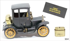 CONSUL OLDTIMER von SCHUCO, Benzinfeuerzeug im Heck, Orig. Ford T-Modell, Räder und Lenkrad, beweglich mit seitlicher Feststellbremse zu fixieren
