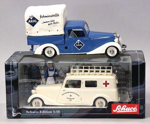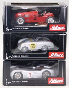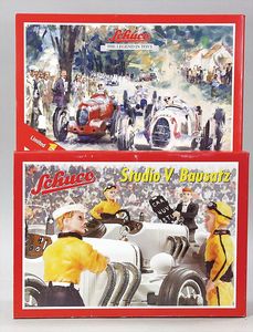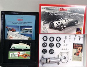 SCHUCO Konv. 3-tlg., Studio III, Bausatz, Die Welt der Silberpfeile, Mercedes Benz W 196, Stromlinie, Hans Hermann, Das Wunder von Reims 1954, Auto Union, New York, USA, Rennwagen, Studio II, Typ C, Bernd Rosemeyer, USA 1937, limitierte Auflagen, 1000 Stück, Studio VI, Rennsportlegenden, Auto Union, Stromlinie, Bernd Rosemeyer, auf der Awus 1937, alles neuwertig, Orig.-Kart.