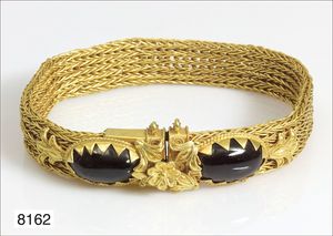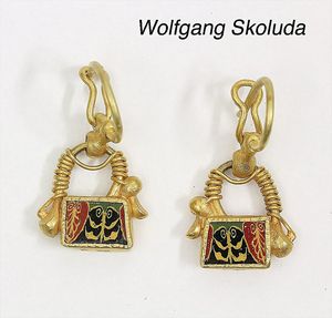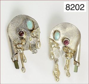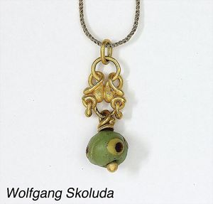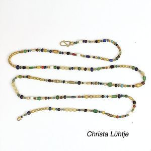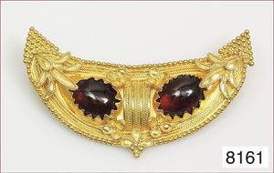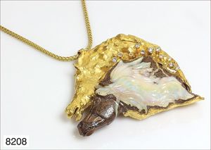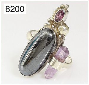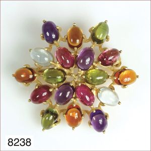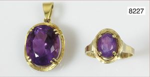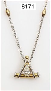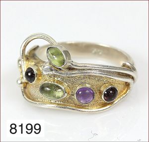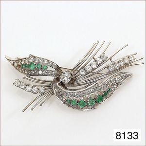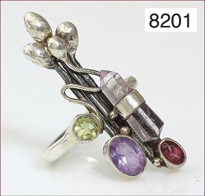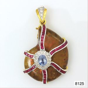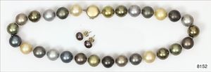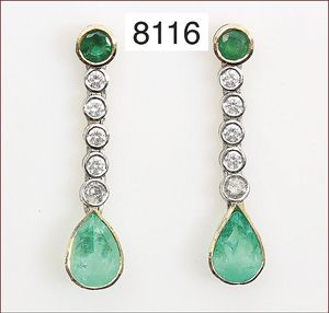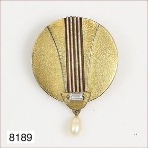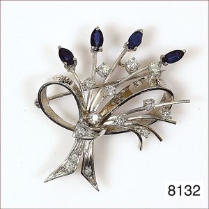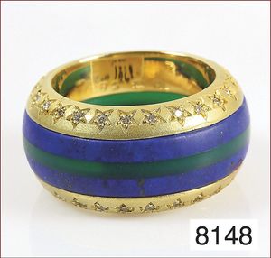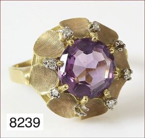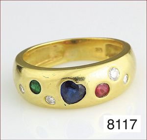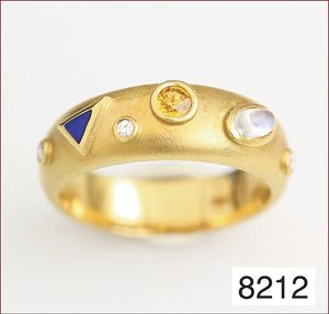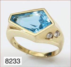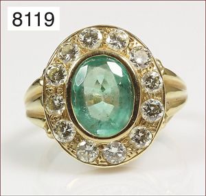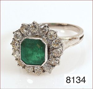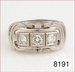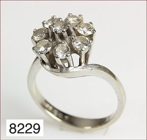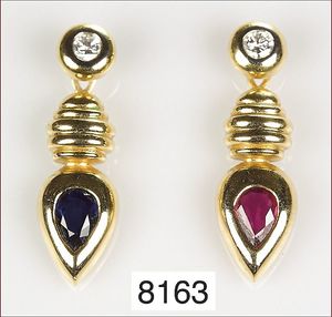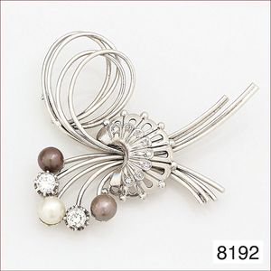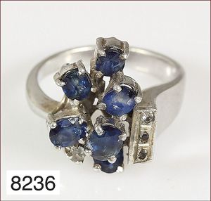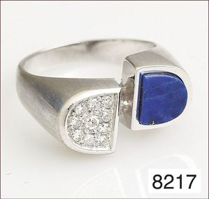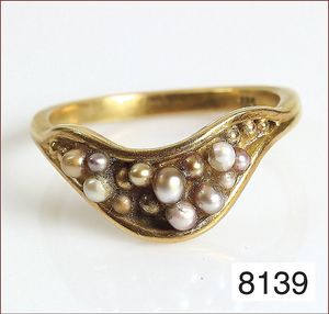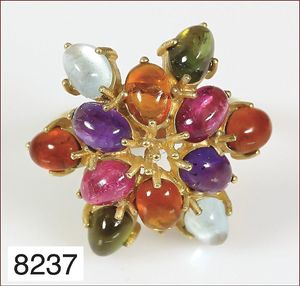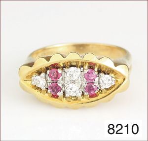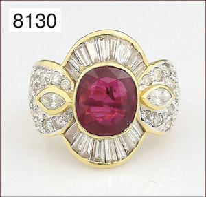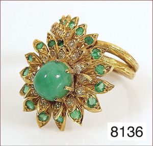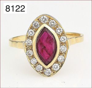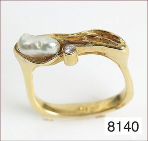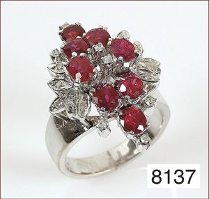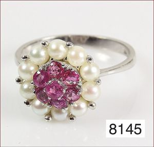 Ring, reicher Diamantbesatz, GG 22 k, 8 Brillanten ca. 0,24 ct, 3 Marquise ca. 0,92 ct, 4 Diamant Tropfen ca, 1,16 ct, 9 Baguettes ca. 0,30 ct, 1 Rubin ca. 0,50 ct, 1 Smaragd-Tropfen ca. 0,40 ct, 1 Saphir 0,6 ct, 1 Perle D = 6,1 mm, Brillanten & Diamanten ca. weiß/get.weiß-vsi/si, total ca. 2,62 ct