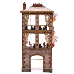 Schneegass & Söhne Puppenhaus, später für Brandszene gestaltet, D., England (Haus) / Deutschland, Waltershausen u.a. (Mobiliar), 1880 – 1890, Maße: 1160 x 540 x 320 mm, historisches Puppenhaus mit erheblichen Beschädigungen, die originale Substanz ordentlich erhalten, ohne Bodenplatte und Rückwand