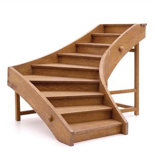 Treppenmodell, Haus, Gebäude, Schaustück, Marke am Treppenabsatz handschriftlich "Limacher 21.12. 51", wohl Schweiz, 1951, Maße: 410 x 510 x 450 mm, Holz, sehr guter Allgemeinzustand