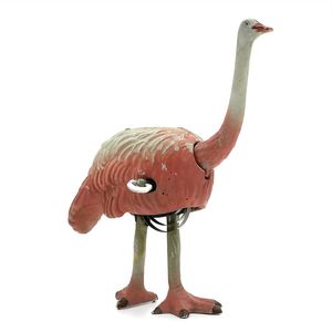 Meier, Johann Phillip Straußenreiter (Penny Toy), Marke auf Fahrersitz markiert "Ges. geschützt", Deutschland, Nürnberg, um 1910, Maße: 70 x 92 x 35 mm, guter Allgemeinzustand, Alters- und Gebrauchsspuren wie Korrosionen und Farbverluste