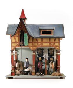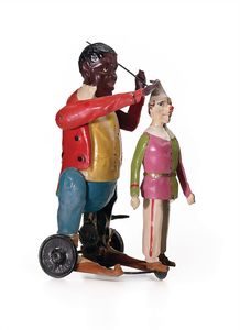 Issmayer, Johann Andreas Farbiger mit tanzendem Polichinelle, geprägt "Made in Bavaria", Deutschland, Nürnberg, um 1900, Maße: 175 x 120 x 85 mm, guter Allgemeinzustand, wohl farblich überholt; funktionstüchtig