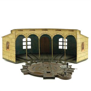 Märklin, Gebr. und Cie. Rundlokschuppen mit Drehscheibe, Marke No. 2113/1, No. 2131/1, Deutschland, Göppingen, um 1910, Durchmesser: 370 mm, sehr guter Allgemeinzustand, funktionstüchtig