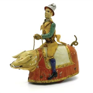 Lehmann Ernst Paul Patentwerk Tanzendes Schwein, gemarkt "EPL 500" sowie mit diversen Patentvermerken, Deutschland, Brandenburg a.d.Havel, um 1920, Maße: 150 x 145 x 60 mm, guter Allgemeinzustand, leichte Alters- und Gebrauchsspuren wie Lackverluste; funktionstüchtig