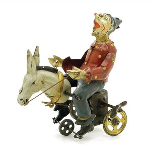 Günthermann, Siegfried Eselreiter (Clown), ungemarkt, Deutschland, Nürnberg, um1910, Maße: 135 x 90 x 115 mm, guter Allgemeinzustand, Gebrauchsspuren, funktionstüchtig