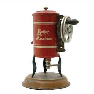 Märklin, Gebr. und Cie. Buttermaschine, Marke ungemarkt, Deutschland, Göttingen, 1900 1909, Maße: 182 x 140 x 115 mm, guter Allgemeinzustand, Gebrauchsspuren; funktionstüchtig