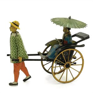 Lehmann Ernst Paul Patentwerk Masuyama Rikscha, Marke EPL-Nr. 773, Deutschland, Brandenburg a.d.Havel, 1928–1938, Maße: 150 x 180 x 70 mm, Blech, Metall (Spiralfederwerk), sehr guter Allgemeinzustand; funktionstüchtig