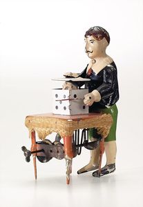 Günthermann, Siegfried Zauberer mit Würfel, ungemarkt, Deutschland, Nürnberg, um 1905, Maße: 170 x 80 x 130 mm, guter Allgemeinzustand, leichte Alters- und Gebrauchsspuren, funktionstüchtig