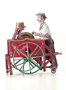 Rossignol, Charles Le Rémouleur (Scherenschleifer), ungemarkt, Frankreich, Paris, um 1900, Maße: 160 x 145 x 87 mm, guter Allgemeinzustand, Alters- und Gebrauchsspuren, kleine Farbverluste, funktionstüchtig