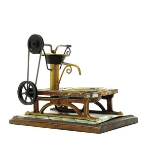 Bing, Gebr. Schmiede, Antriebsmodell, Marke in der Grundplatte geprägtes, frühes Firmensignet, zusätzlich die handschriftlichen Angaben "9956/167" (Seriennummer) und "6,-", Deutschland, Nürnberg, um 1912, Maße: 210 x 210 x 135 mm, Blech, Eisenguss, Draht, Papier, guter Allgemeinzustand, funktionstüchtig, Gebrauchs- und Altersspuren, Treibriemen ergänzt