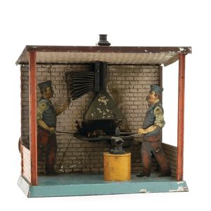 Carette & Cie., Georges Springbrunnen, Antriebsmodell, gemarkt "G.C.& Co. N.", Deutschland, Nürnberg, um 1910, Maße: 130 x 390 x 297 mm, guter, funktionstüchtiger Allgemeinzust., Farbverluste