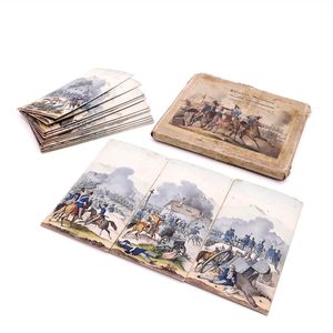 Lotzbeck, Johann Ludwig Grünwedel, C. Schlachten Myriorama, Legespiel, Deutschland, Nürnberg, um 1850, Maße: 8 x 160 x 142 mm, Maße: 1 x 72 x 133 mm, guter Allgemeinzustand, Gebrauchsspuren