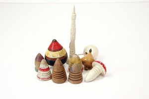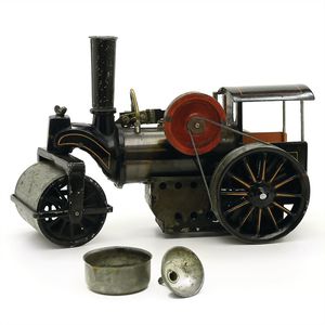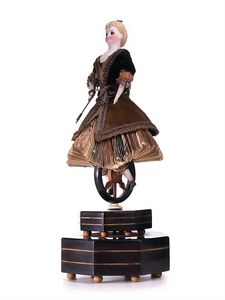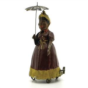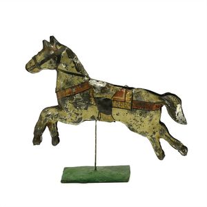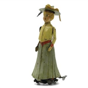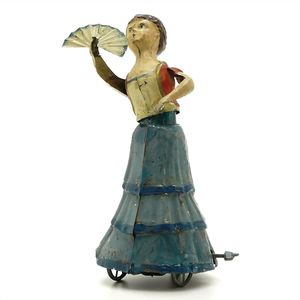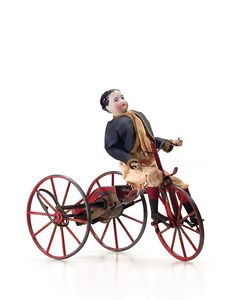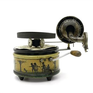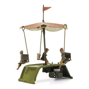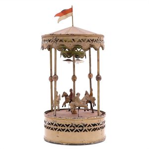 Karussell (Reiter), gemarkt "Made in Germany", Deutschland, um 1900, Maße: 355 mm, Durchmesser: 170 mm, guter Allgemeinzustand, kl. Lackabplatzer, Drehscheibe, etwas verzogen, funktionstüchtig