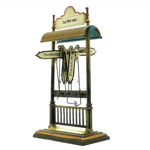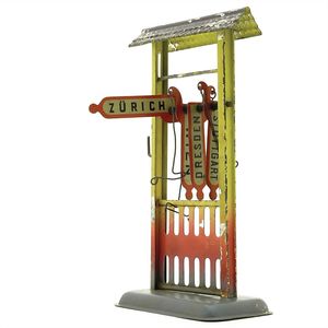 Märklin, Gebr. und Cie. Richtungsanzeiger, Blech, ungemarkt, Deutschland, Göppingen, um 1910, Maße: 215 x 115 x 63 mm, guter Allgemeinzustand, Gebrauchs- und Altersspuren wie kleine Lackschäden, 1 Schild fehlt