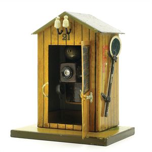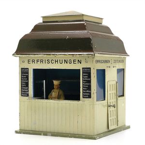 Märklin, Gebr. und Cie. Wärterhaus mit Fernsprecher, gemarkt: "Germany", Deutschland, Göppingen, 1919 – 1923, Maße: 130 x 107 x 80 mm, sehr guter Allgemeinzustand, geringe Gebrauchsspuren, u.a. 2 kleine Farbabplatzer am Dach