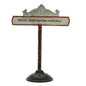 Märklin, Gebr. und Cie. Verbotstafel, ungemarkt, Deutschland, Göppingen, 1934 – 1937, Maße: 125 x 100 x 46 mm, guter Allgemeinzustand, Gebrauchs- und Altersspuren