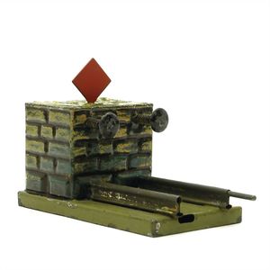 Märklin, Gebr. und Cie. Prellbock, gemarkt: "Made in Germany", Deutschland, Göppingen, um 1920, Maße: 80 x 130 x 60 mm, Blech, guter Allgemeinzustand, Gebrauchs- und Altersspuren