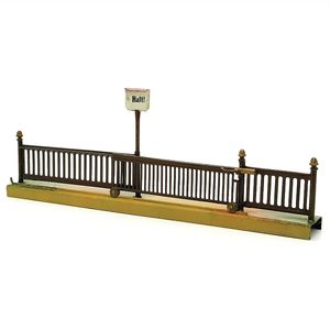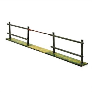 Märklin, Gebr. und Cie. Rollgitterschranke, ungemarkt, Deutschland, Göppingen, 1930 – 1936, Maße: 130 x 355 x 38 mm, Blech, sehr guter Allgemeinzustand, minimale Gebrauchsspuren