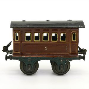 Märklin, Gebr. und Cie. Personenwagen, gemarkt "Germany" in Rot, Deutschland, Göppingen, 1907 – 1908, Maße: 105 x 165 x 72 mm, guter Allgemeinzustand, Gebrauchs- und Altersspuren