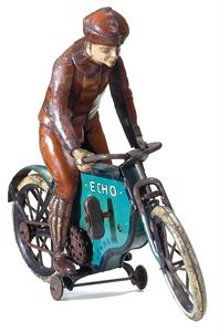 Lehmann Ernst Paul Patentwerk Halloh, Motorrad, Verkehr, gemarkt EPL-Nr. 683, Deutschland, Brandenburg a.d.Havel, 1914 – 1941, Maße: 220 x 180 mm, guter Allgemeinzustand, wenige Farbverluste, funktionstüchtig