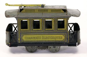 Reuther, Rudolf Strassenbahn, Deutschland, Seiffen (Erzgebirge), um 1930, Maße: 50 x 160 x 29 mm, guter bis sehr guter Allgemeinzustand
