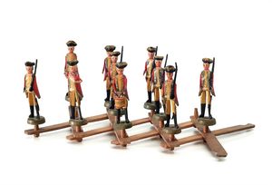 Erzgebirge Chinesische Treppenläufer (Quartett), Marke auf dem Boden des Kastens alte Kennzeichnung in Bleistift "9/-", Deutschland, Erzgebirge, um 1850, Maße: 65 x 200 x 110 mm, Maße: 200 x 110 x 155 mm, guter, funktionstüchtiger Allgemeinzustand, Siegellackverbindungen ausgebessert, Schnüre ersetzt