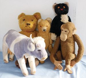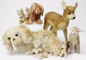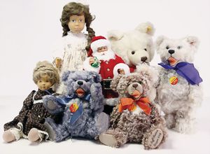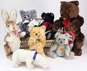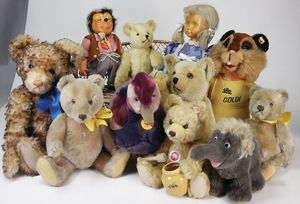 Konv. Steiff Replika, im Orig.-Kart., 1 x Cherished Teddys, Daisy, blond, 33, im Orig.-Kart., 1 x Teddybär, Junge, blond, 29 cm, limitierte Auflage von 500 Stück weltweit, mit Zertifikat, im Orig.-Kart., 1 x Christian Uhlbricht GmbH & Co, handmade in Germany, Nussknacker, im Orig.-Kart., Schlappbigi?, 1936/96, im Orig.-Kart., 1 x Teddybaby, 1929, blau, 28, im Orig.-Kart., 1 x Steiff Replika, Musiktedd, 1951, caramel, 35, 1 x Steiff Replika, beige, 28, im Orig.-Kart., dazu 1 Babybär, 1946, blond, 35, im Orig.-Kart., 1 x Dicky, 1930 weiß, 33, bitte besichtigen