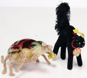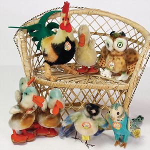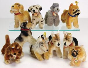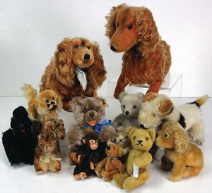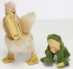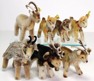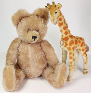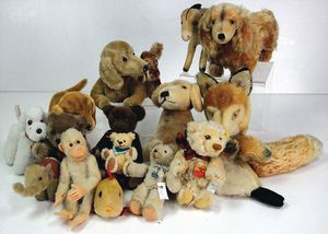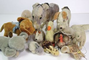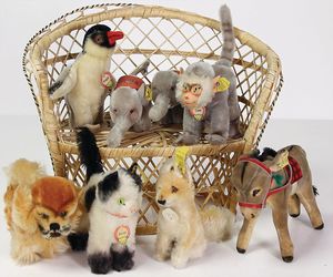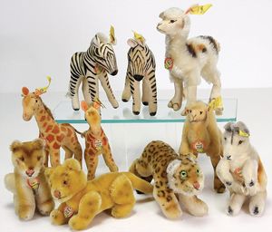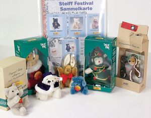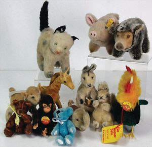 STEIFF Konv. Tiere, bespielt, teilw. mit Knopf u. Fahne