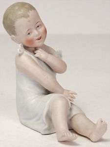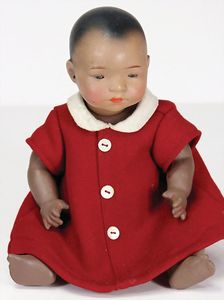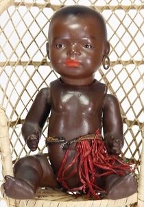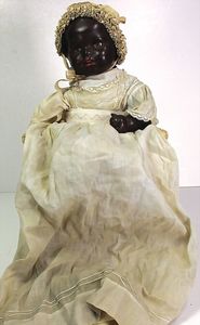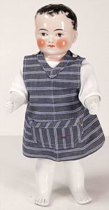 Badepuppe, Frozen Charlie, glasiertes Porzellan, schwarze gemalte Haare, 38 cm