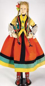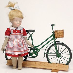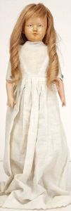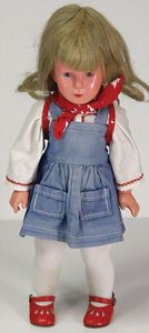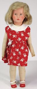 KÄTHE KRUSE Mädchen, Kunststoffkopf, fest aufgeklebte rote Perücke, 45 cm, Stoffkörper, guter Zust.